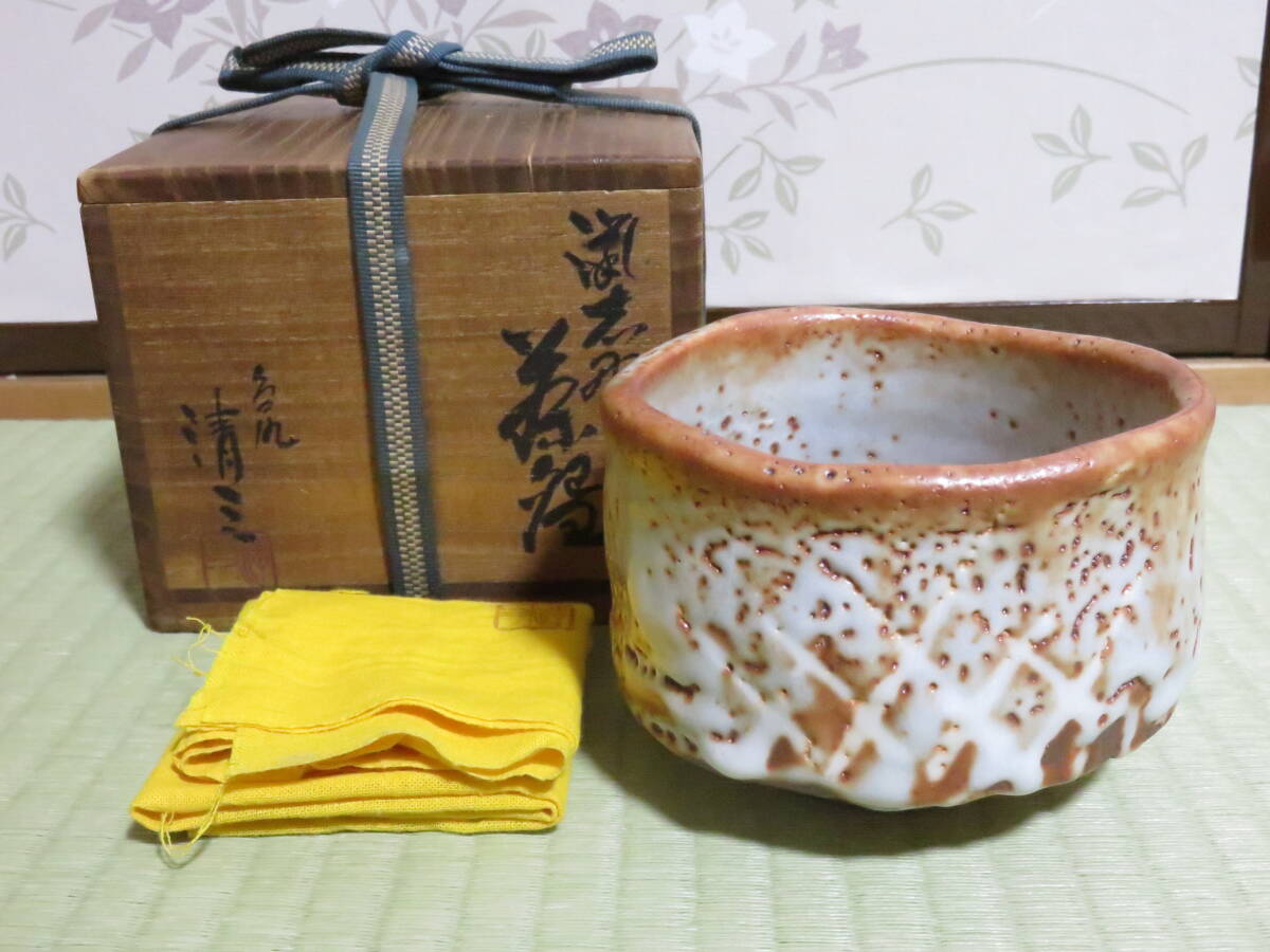 - ●加藤清三 久尻 鼠志野 茶碗 共箱付●茶道具