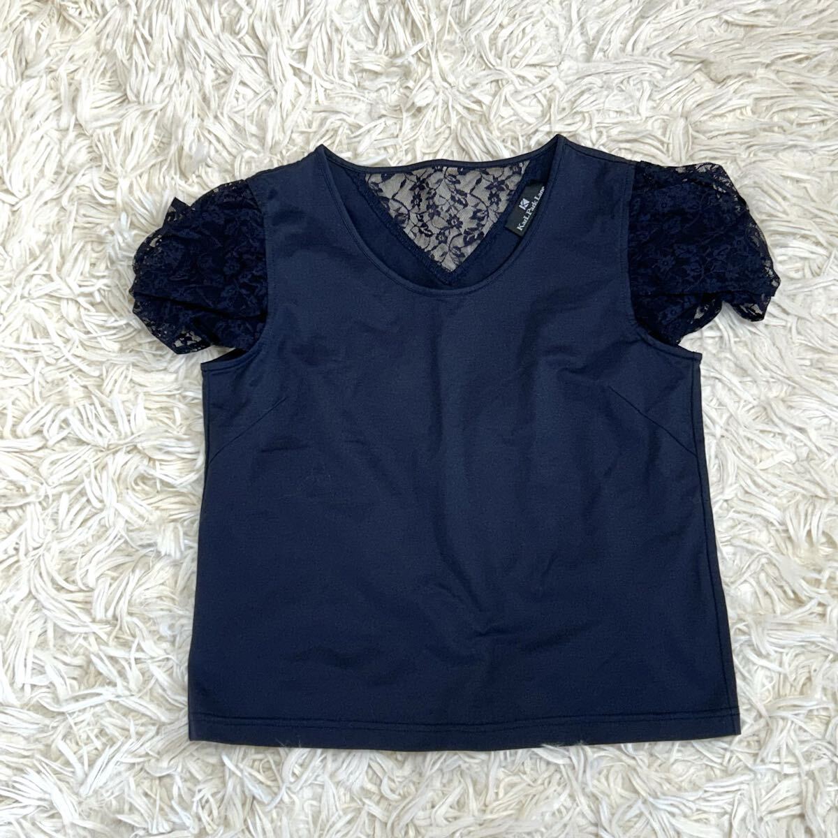 - KARL PARK LANE ネイビー レーススリーブ トップス M 半袖