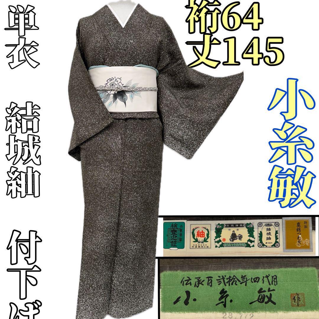 - 【着物と帯 時流】ヒ25971◆正絹 単衣 結城紬◆小糸染芸 小糸敏 美品