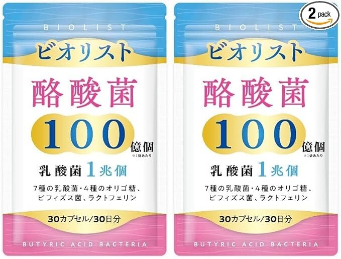 - 【医師監修】生きた 酪酸菌 100億個 短鎖脂肪酸 乳酸菌1兆個 ビフィズス菌 ラクトフェリン オリゴ糖 腸まで届く 30日分 (2袋セット)