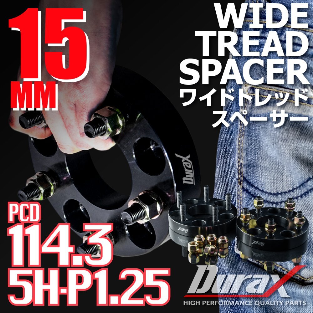 > DURAX ワイドトレッドスペーサー 15mm PCD114.3 5H P1.25 ステッカー付 ブラック 2枚 ホイール スペーサー ワイトレ 日産 スズキ スバル
