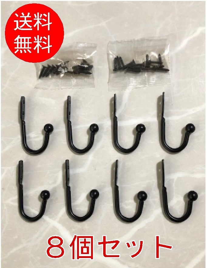 > 【8個セット】壁掛けフック 金具 FU-06■黒 アンティーク 帽子 おしゃれ 洋服 ヨーロッパ 古民家 ヨーロピアン レトロ インテリア