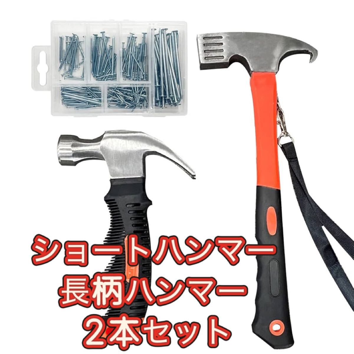 > ショートハンマー 長柄ハンマー ゴム柄 鉄丸釘付き ショートネールハンマー 磁気付きヘッド ハンマー 釘抜き 家庭用 木工