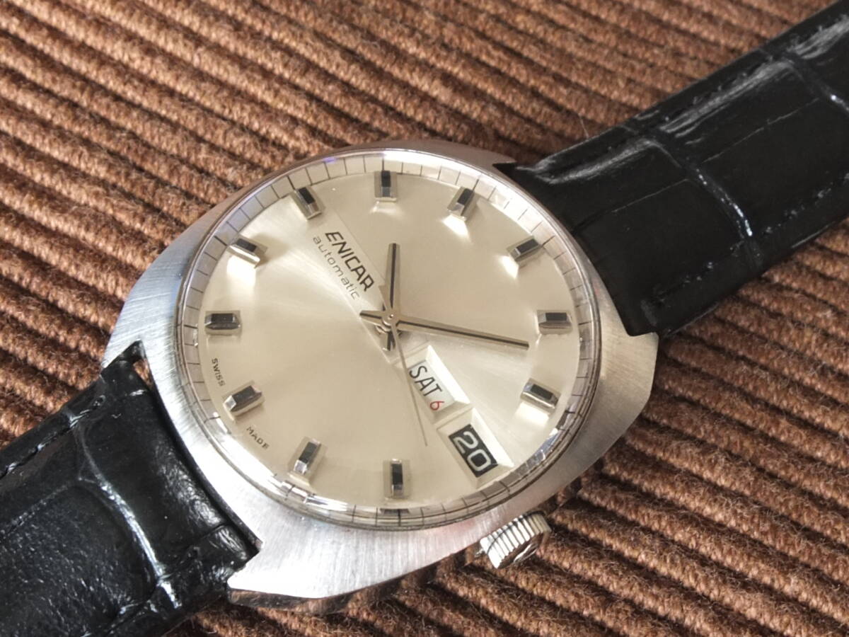 - エニカ ENICAR デイデイト シルバー文字盤 オートマチック 自動巻 メンズ 希少 美品