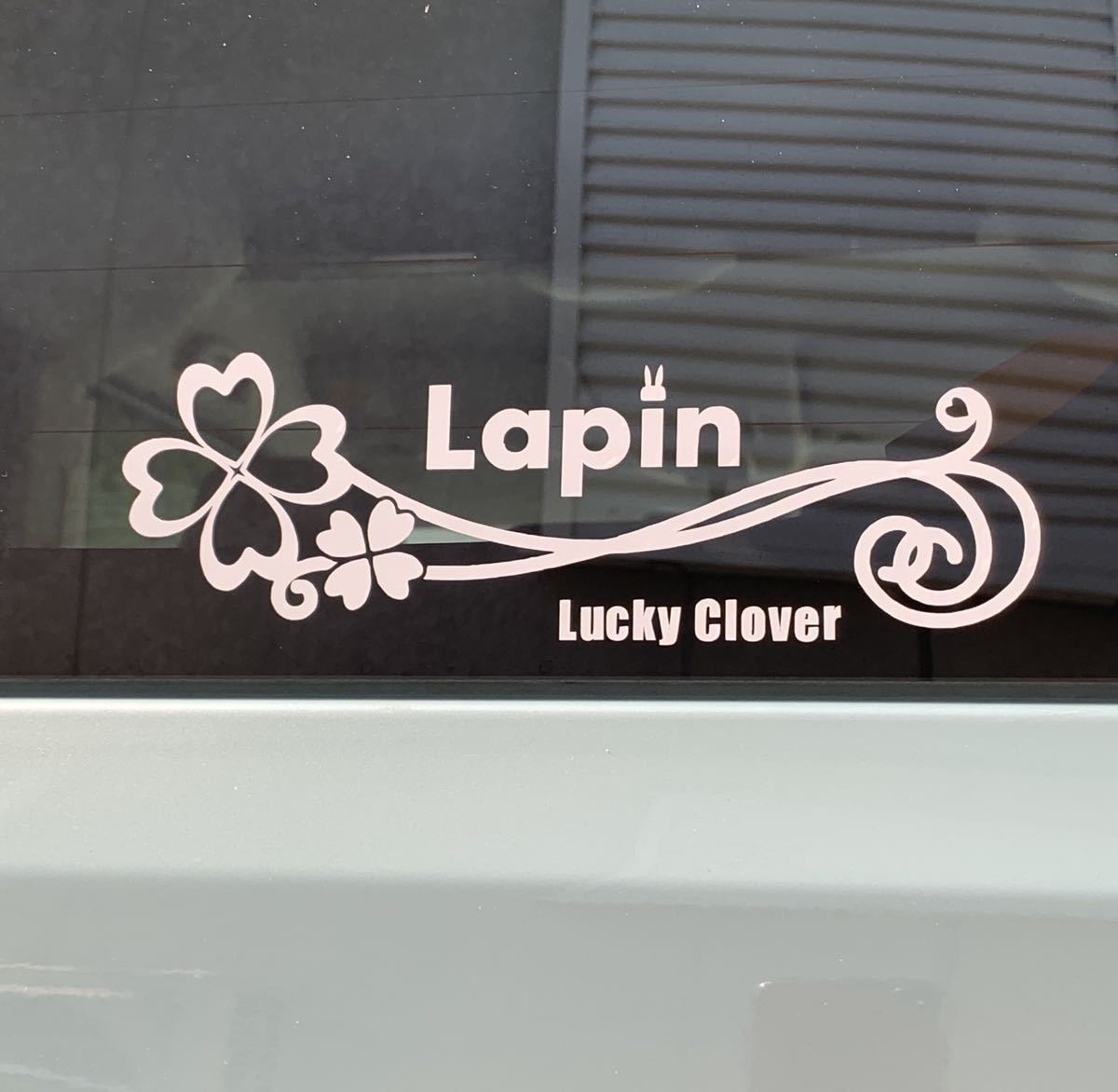 > 色変更可能 ラパン 四つ葉クローバー ワンポイントステッカー 白色 車 デカール // Lapin SUZUKI 四葉 かわいい スズキ
