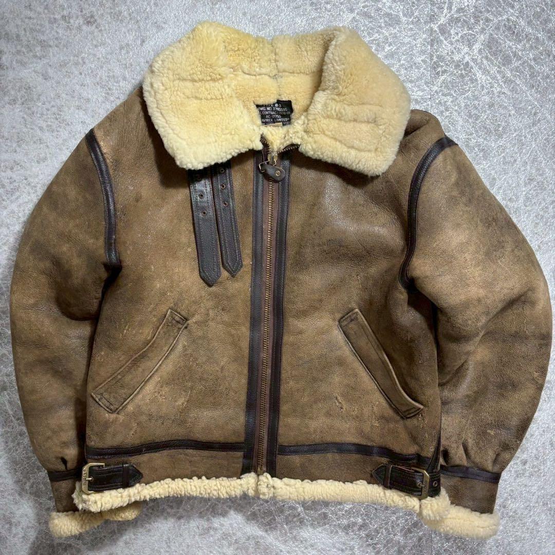 > AVIREX アヴィレックス B-3 ムートン フライトジャケット ボアライナー USA製 40 USA製 大きめサイズ ブラウン ミリタリー