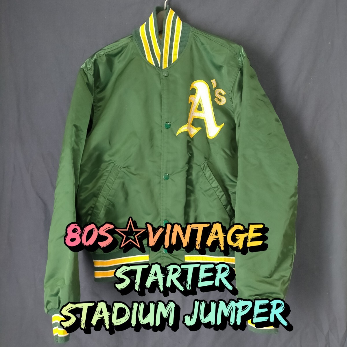 > 【80年代・ビンテージ】STARTER オークランド・アスレチックス スタジャン USA製 サイズM メジャーリーグ スタジアムジャンパー スターター