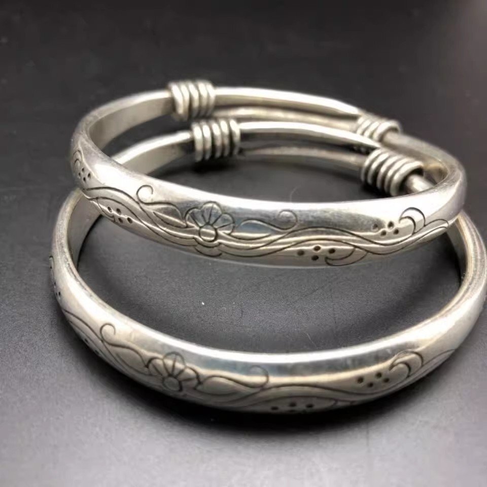 - 送料無料!珍品 旧蔵 超美品! 腕輪 花紋図 浮き彫り 2個セット 装飾 sux043