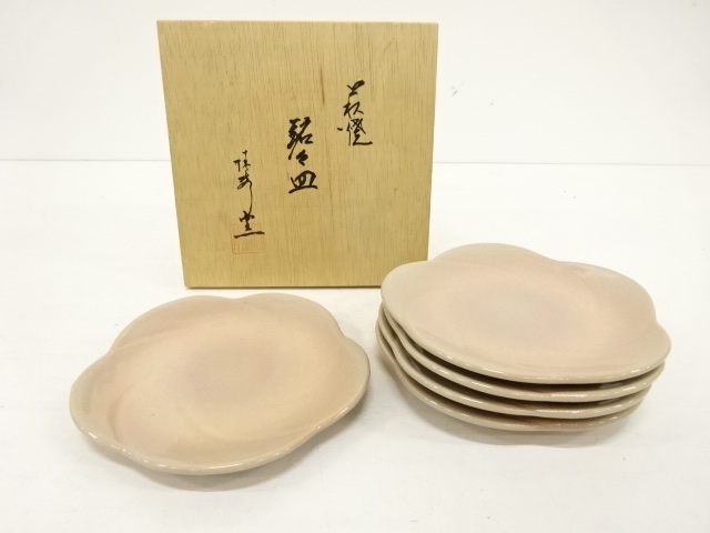 - 萩焼 椿秀造 花形 銘々皿 5客揃 (IBF2DHP-013)