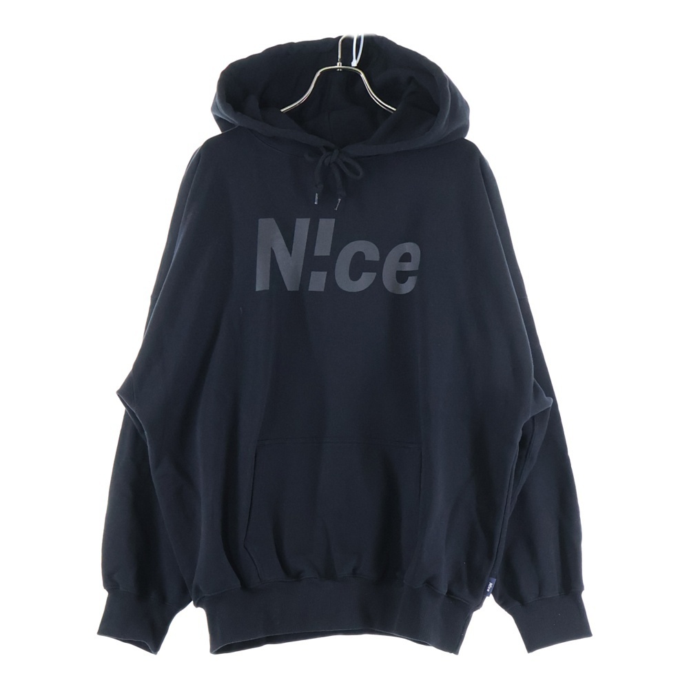 - N!ce ナイス ロゴプリント フーデット リブスウェットパーカー ブラック NC-CT01