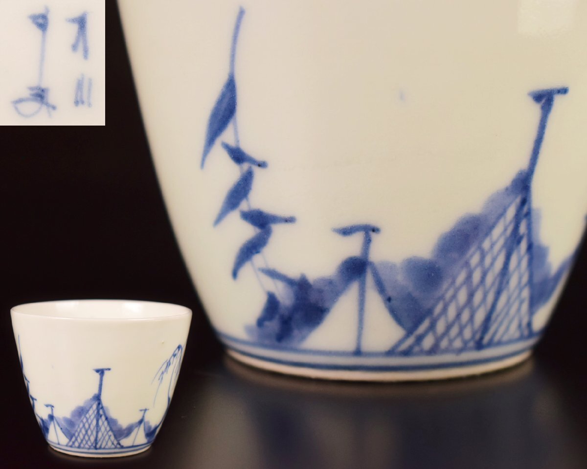 Z569 【泉美】大明年製 染付 蕎麦猪口 湯呑 茶器
