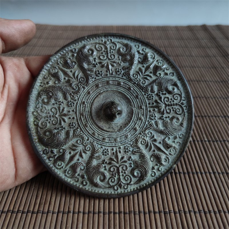 - 純銅鏡 青銅鏡 神獣 中国 銅器 青銅彫 銅製 銅鏡 置物 擺件 収蔵 鑑賞 中国美術品