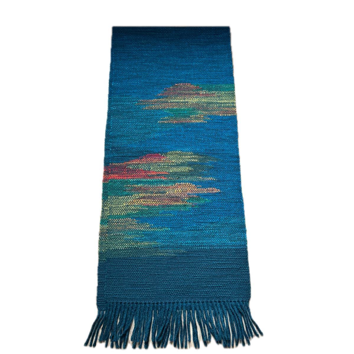 > 優佳良織工芸館●北海道手織つむぎ 毛100% 秋の摩周湖●ストール マフラー 敷物 ラグ 伝統工芸 つづれ織り●レトロ*アンティーク●
