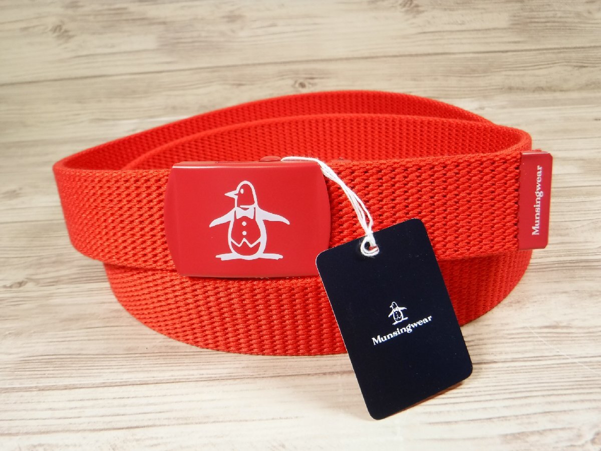 - V221 マンシングウェア 新品 ペンギンバックル ゴルフベルト カジュアルベルト Munsingwear デサント 赤 レッド