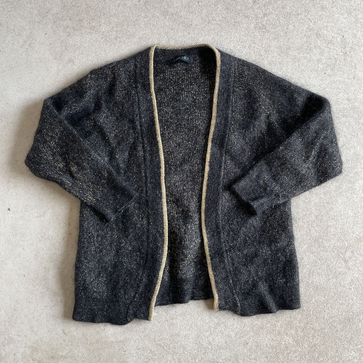 - ビンテージ シルク ウール ラメ糸 ラグラン ニットカーディガン 4ヴィンテージ 黒 ブラック レディース セーター 国産古着 日本製