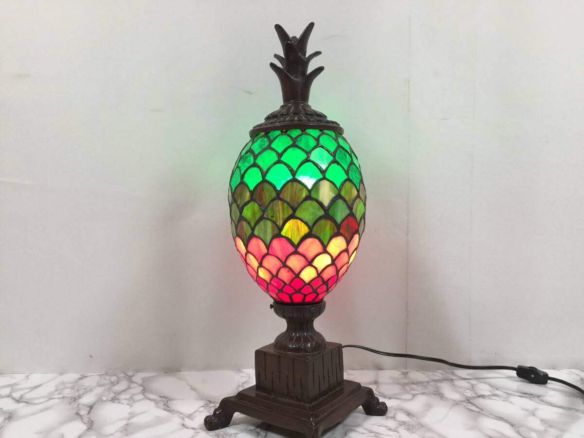 > ステンドグラス ランプ パイナップル 照明 テーブルランプ 49㎝ インテリア 通電OK B