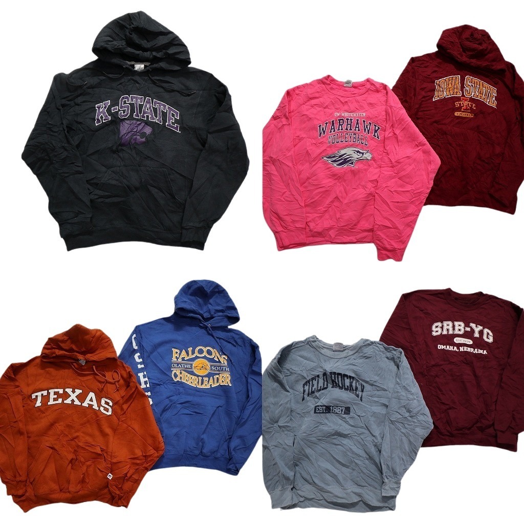> 古着卸 まとめ売り カレッジ風 スウェット 7枚セット (メンズ M ) アーチロゴ チームロゴ フーディー アームロゴ 中古 古着 NC1120