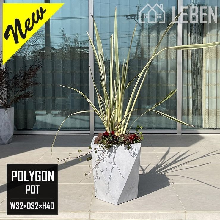 - ★【訳あり品】 プランター ファイバークレイプランター 幅32×奥行32×高さ40cm 三角形 ライトグレー【ランダム】中型 おしゃれ [OU]