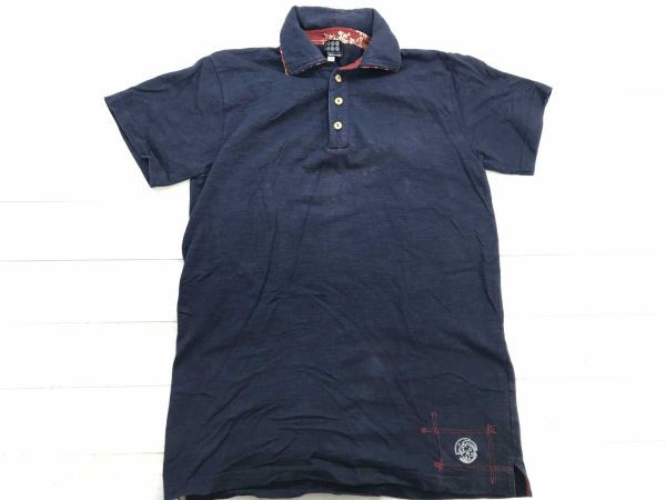 - タケオキクチ TK TAKEO KIKUCHI レトロ 和柄 グランジ ネオお兄系 サクラ 千代柄 稲穂刺繍 襟下レイヤード 半袖ポロシャツ メンズ 3 紺