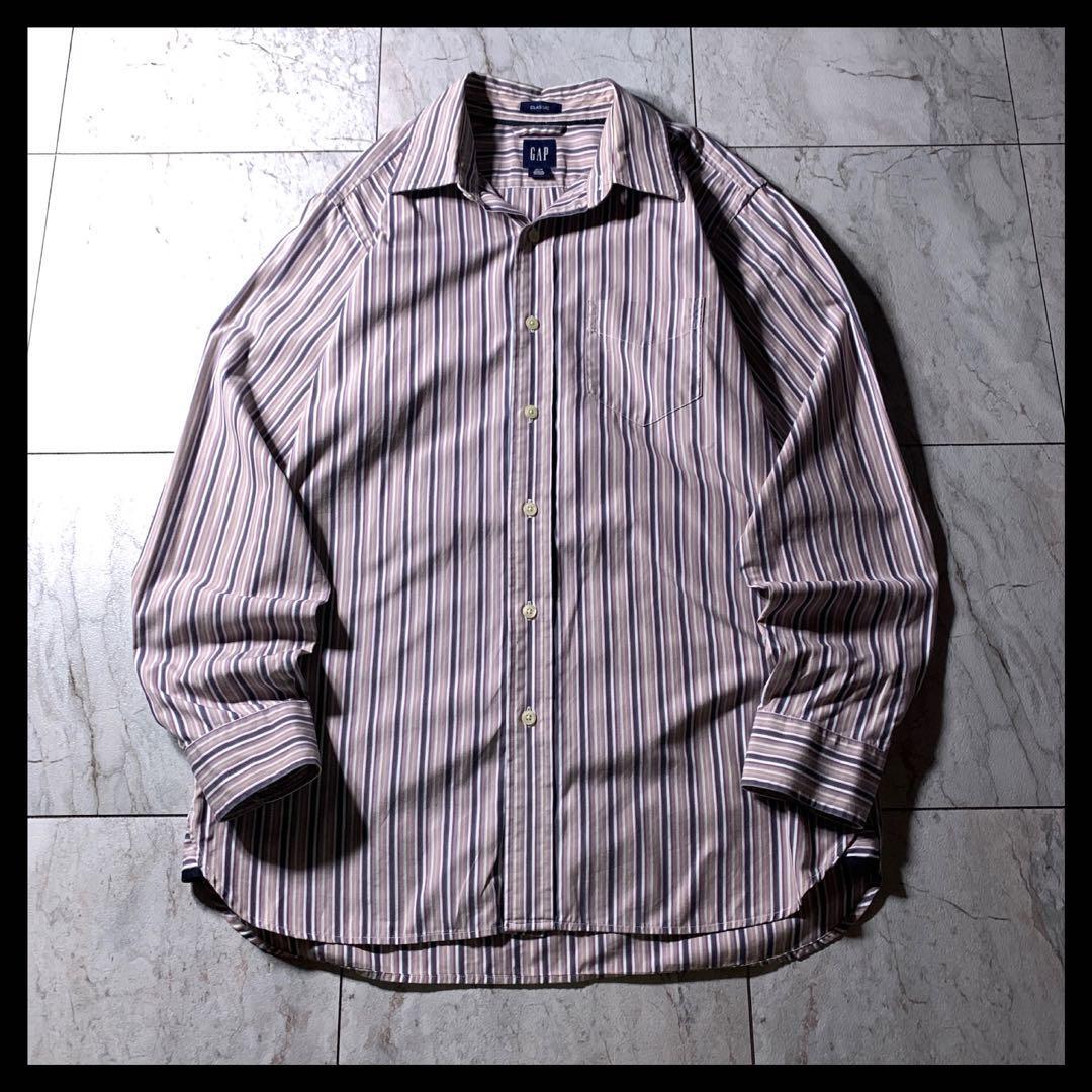 - 00s OLD GAP レギュラーカラー マルチストライプ シャツ 紫 茶色 M