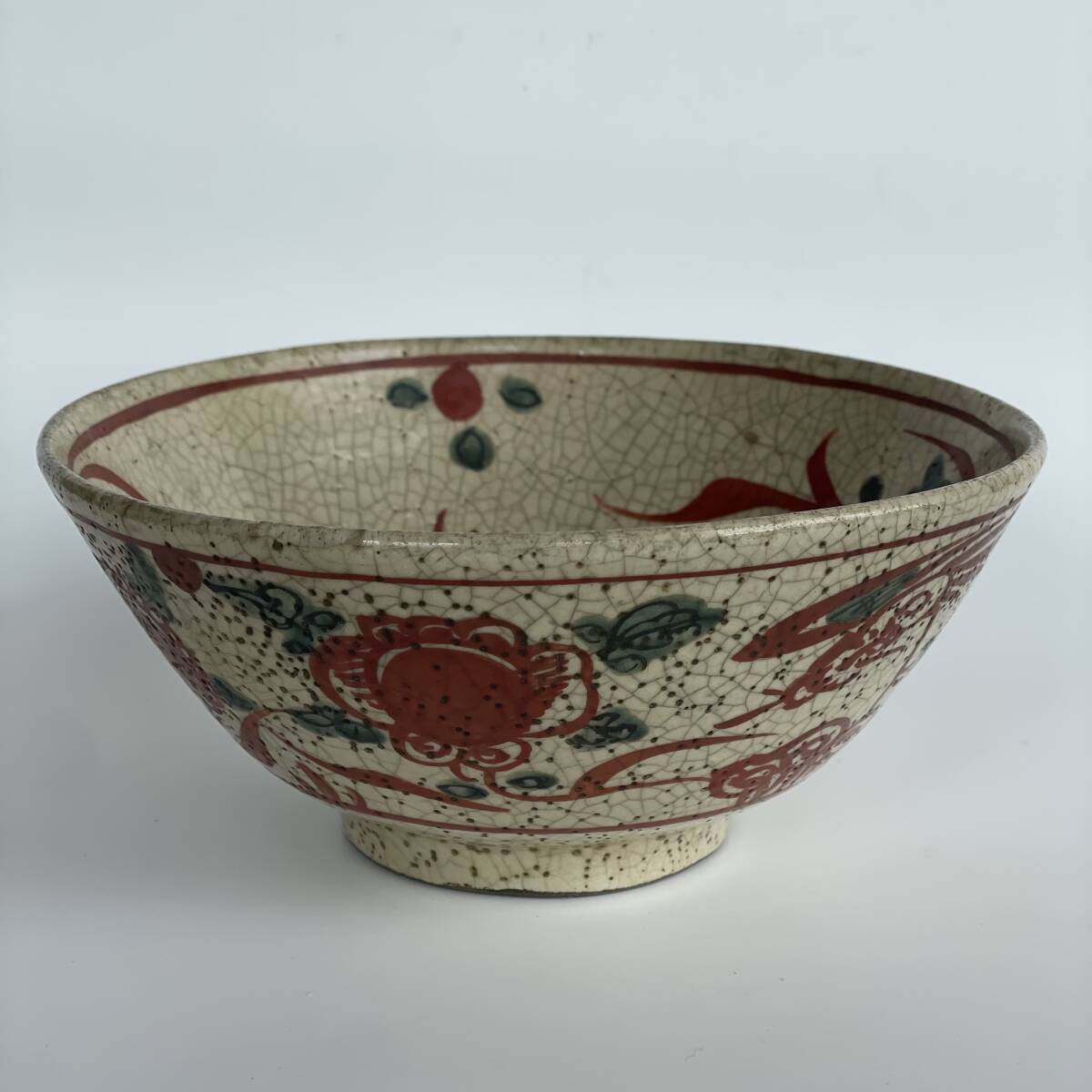 - 中国 明 呉須赤絵 菓子鉢 中鉢 古玩 魁鉢 唐物 時代物 江戸期 犬山焼 花文