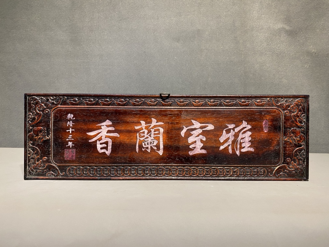 > 早期收集 旧藏 古紫檀木彫 雅室蘭香 壁挂 墻挂 中堂挂屏 置物 賞物 時代物 古董品 骨董 旧家蔵出し 唐物 中国古玩 古美術品