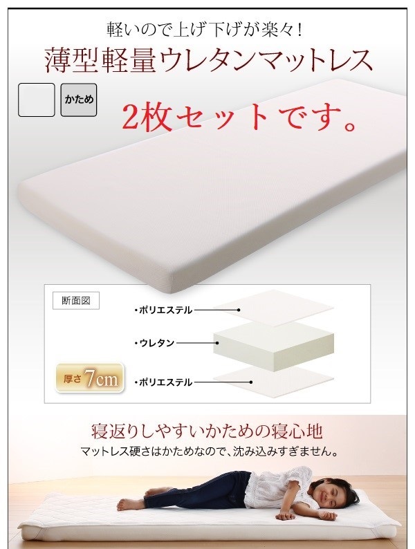 - 数量限定 2枚セット 未使用保管品 圧縮ロール未開封 薄型軽量ウレタンマットレス ピーチスキン仕様 ショートセミシングル ホワイト