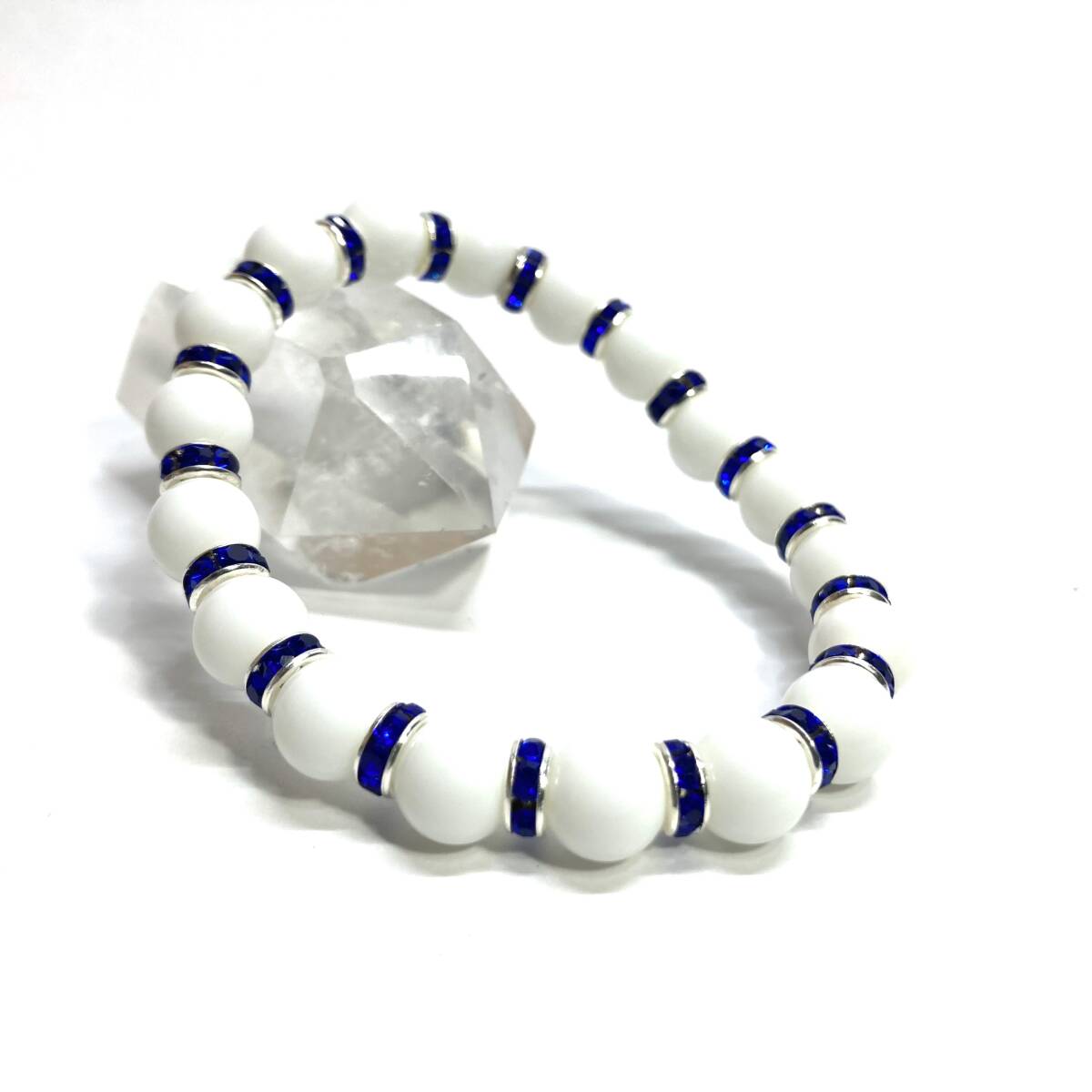 - ホワイトオニキス パワーストーン ブレスレット 8mm 天然石ブレス (D.ブルー) /開運 浄化 厄払い 人間関係 効果 レディース 通販 白