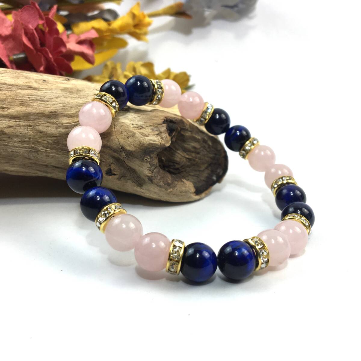 > ローズクォーツ&ブルータイガーアイ パワーストーン ブレスレット 8mm 天然石ブレス ゴールド / 浄化 美・愛 恋愛運 レディース ピンク