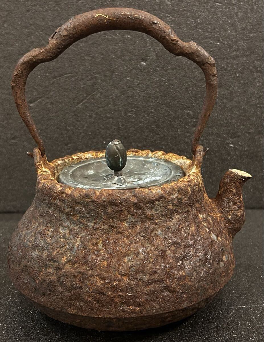 - 【龍文堂造/ 鉄瓶】裏蓋銅部分刻印あり 弦部分紋様あり 煎茶道具 時代物 茶道具 急須 京鉄瓶 釜師 茶器 共箱なし 安之介造? 骨董