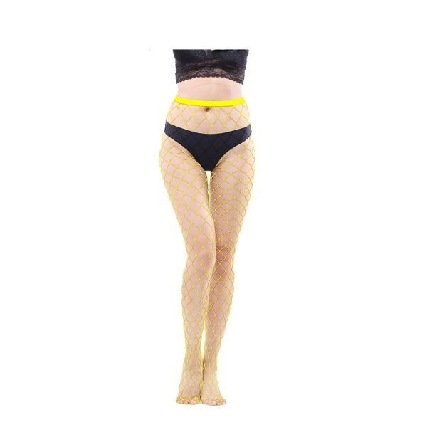 - ストッキング 編みタイツ レディース 30デニール フィッシュネット ラッセルレース 大網目 イエロー(黄色)