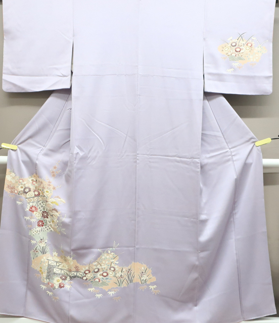 > 《京都一輝堂》【着】付下げ 金彩 梅菊萩文 身丈約158cm 裄丈約63cm 24z-4856
