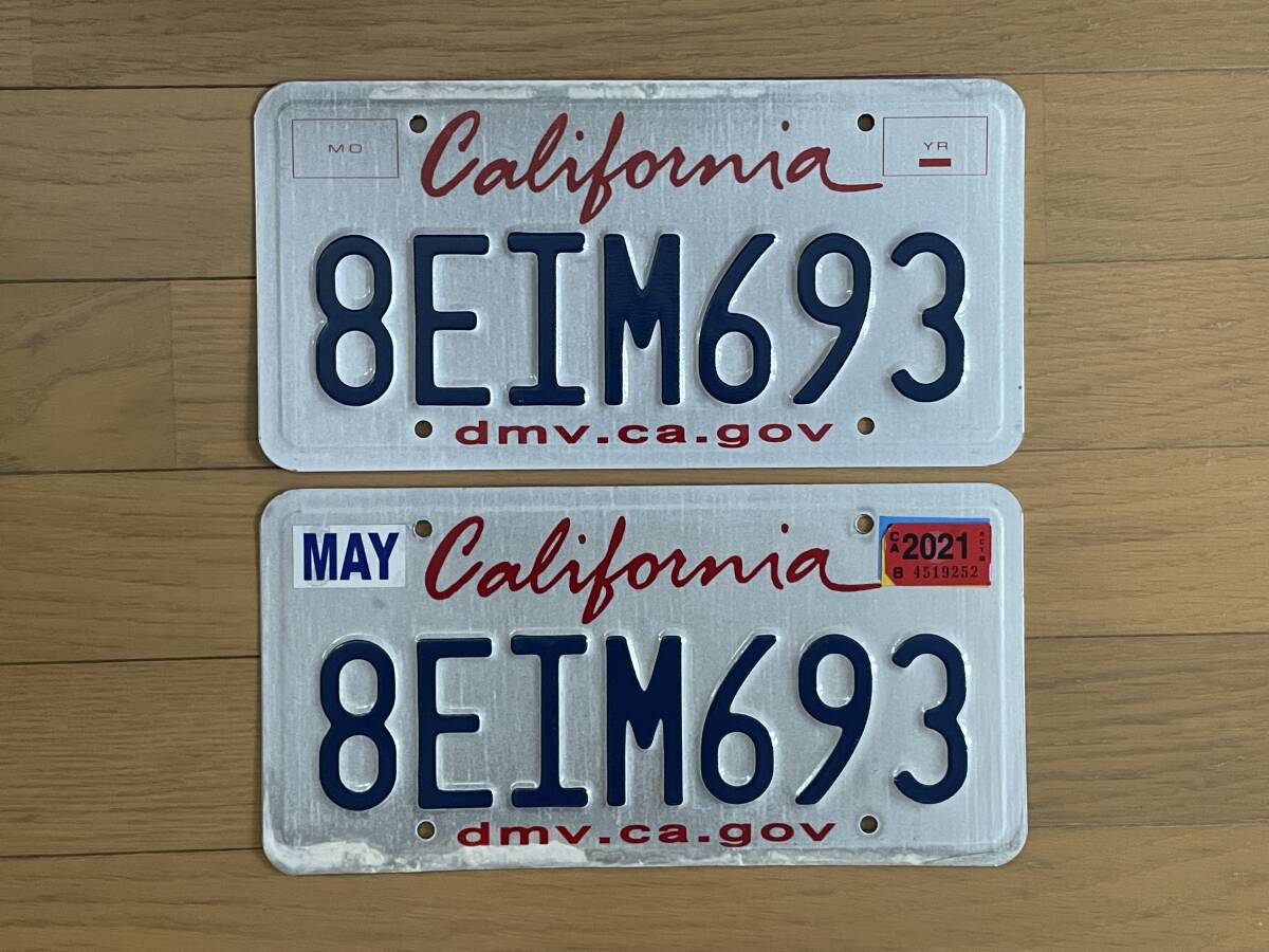 > カリフォルニア ライセンスプレート 8EIM693 2枚セット USDM 世田谷ベース 米国トヨタ シボレー フォード ロサンゼルス ナンバープレート