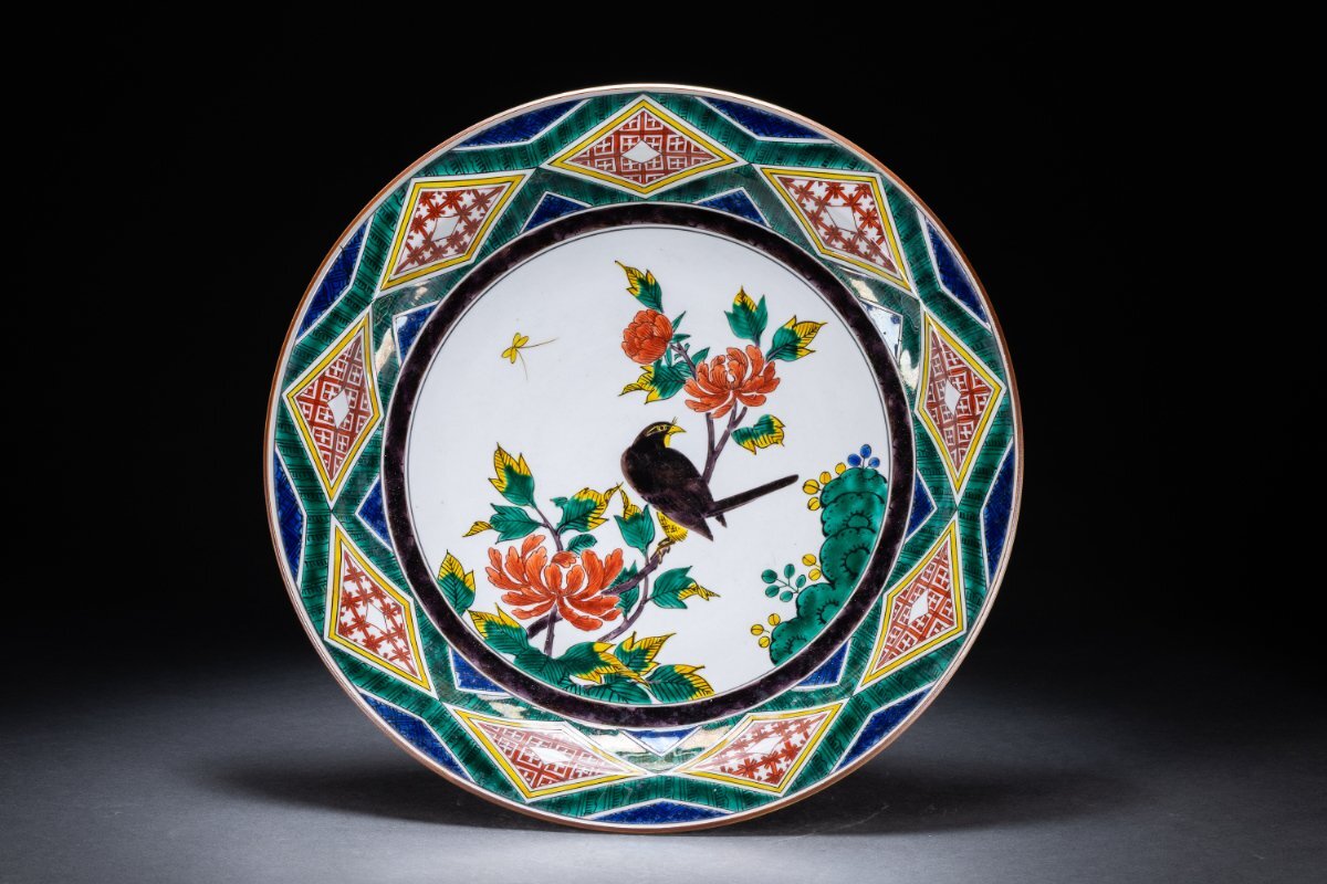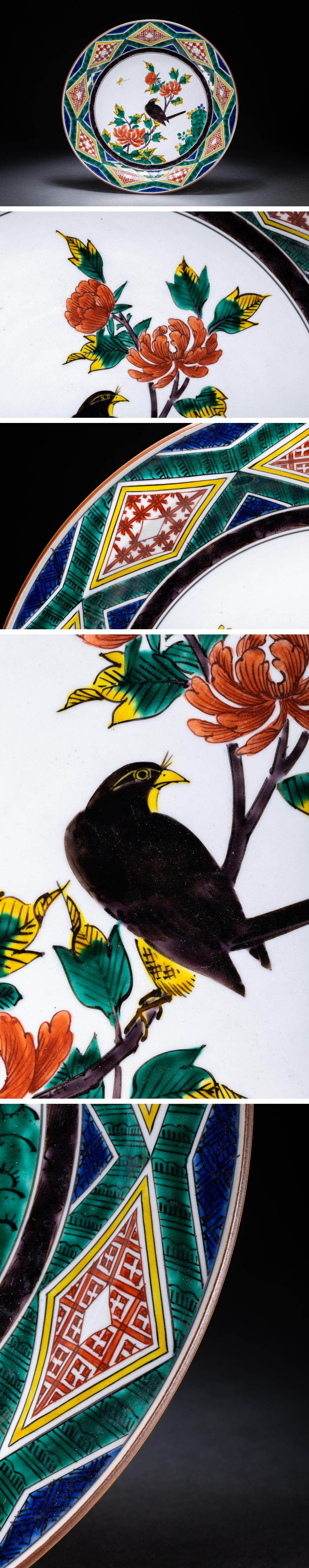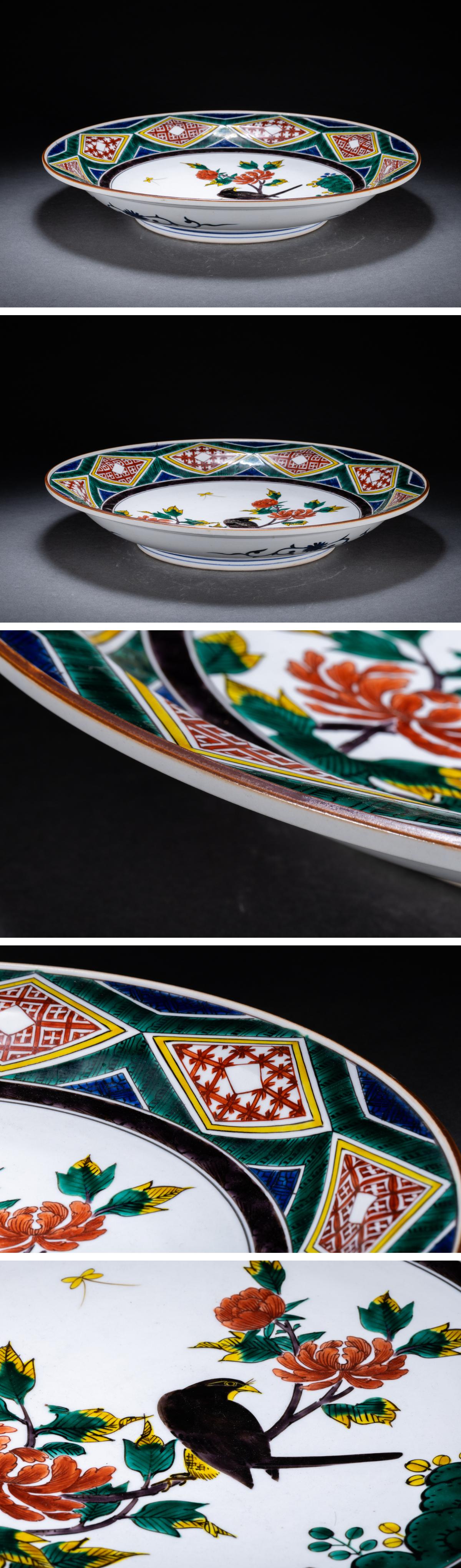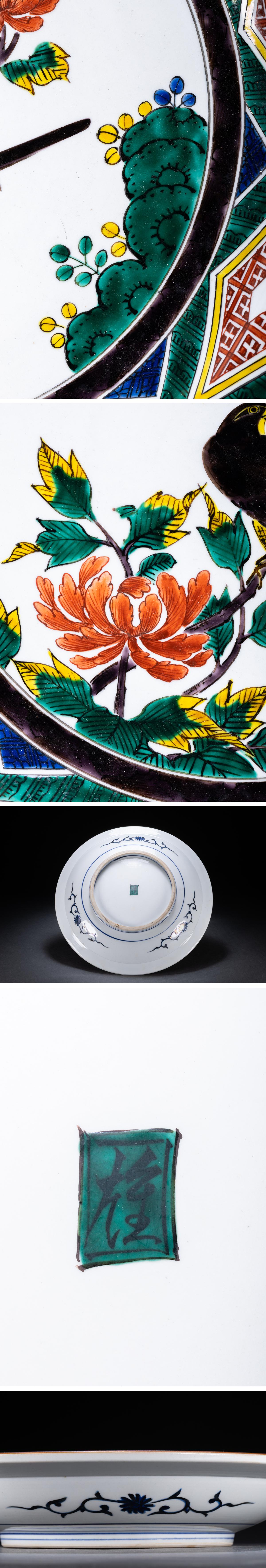 > 【雲錦】某有名オークション購入 明治~昭和時代 九谷焼 花鳥図飾皿 古置物 古擺件 古美術 時代コレクションWK9-131S08