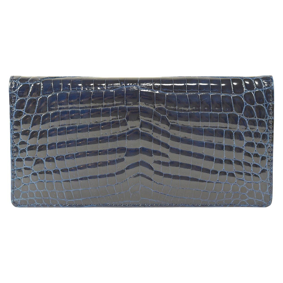 - クロコダイル 未使用品 極上 スモールクロコダイル 無双仕立て 艶有 シャイニング ブルー 長財布 長札入れ 革の宝石