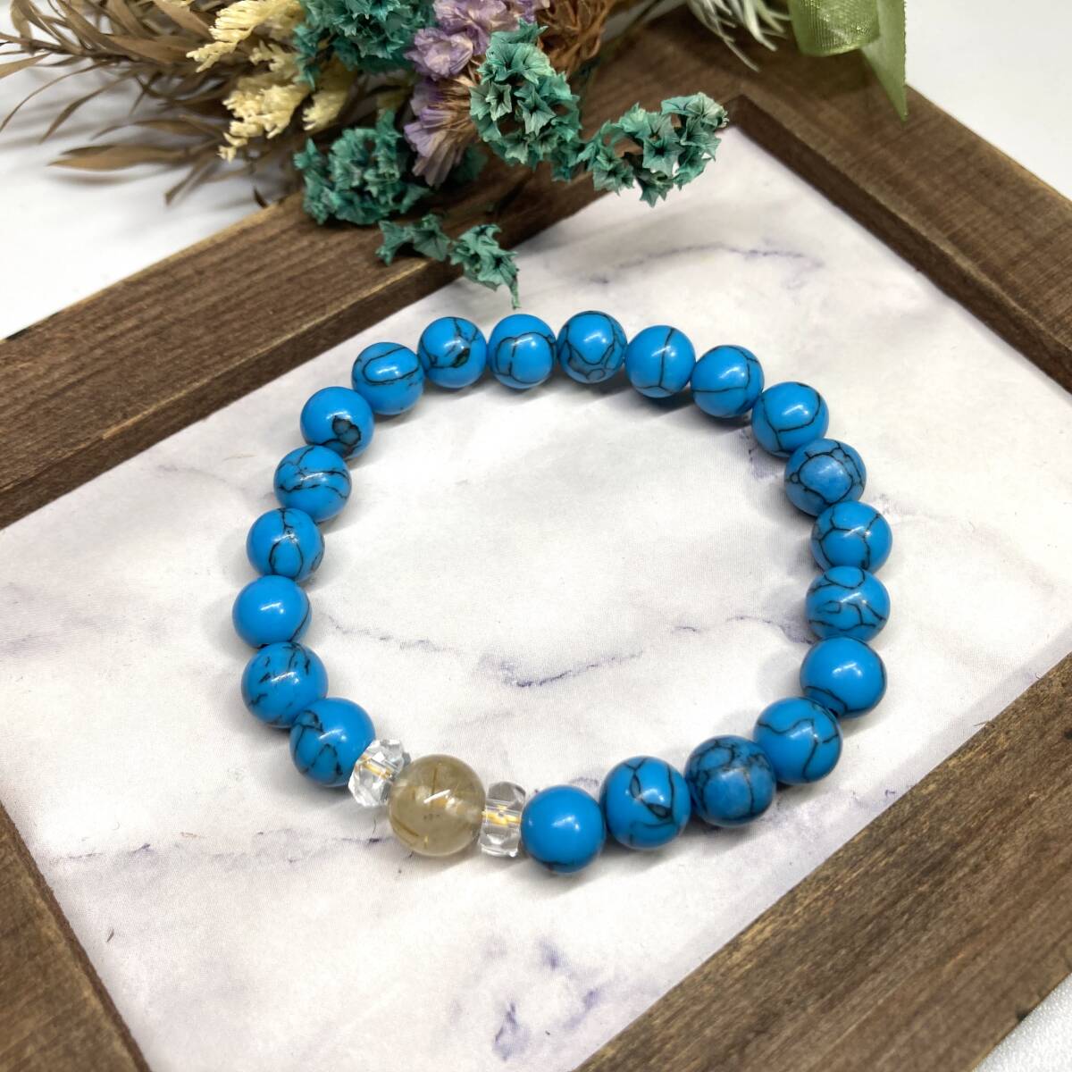> ターコイズ&ルチルクォーツ ブレスレット パワーストーン レディース 女性 金運 仕事運 開運 数珠ブレス お守り #1
