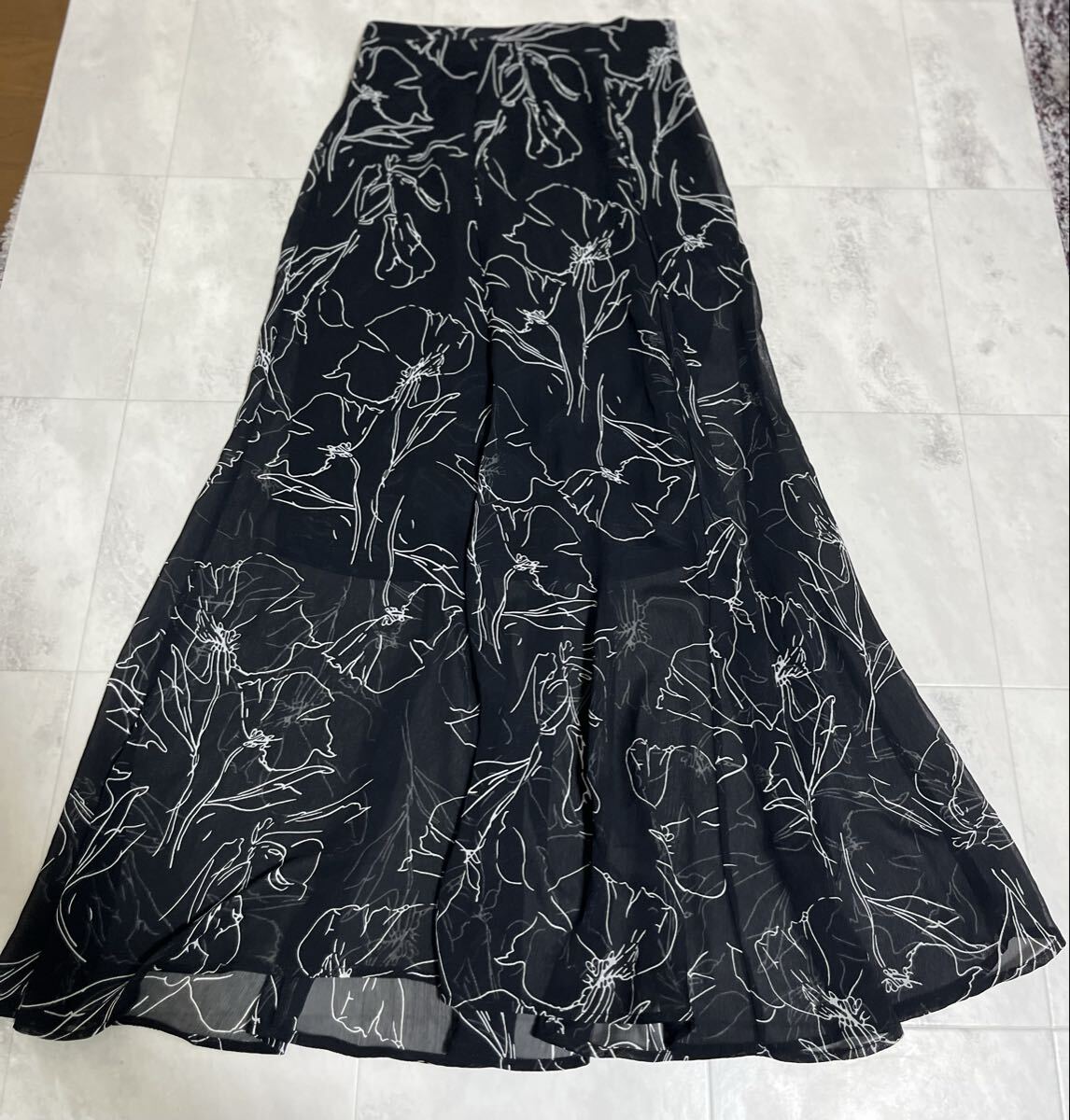 - archives アルシーヴ フレアスカート ロング丈 マキシ丈 花柄 ブラック 黒