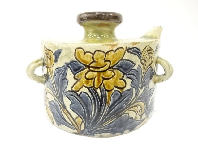 - 壺屋焼 人間国宝 金城次郎造 花文 抱瓶 (IBI2D-017)