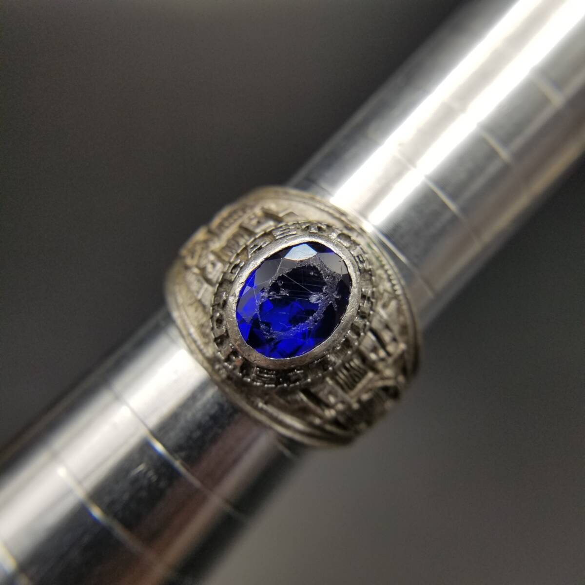 > 1989年 Reed & Co.社製 米国 ヴィンテージ クラスリング J.H.S. 127 The Castle Hill 925 シルバー カレッジシグネット 銀 指輪 青石 Y24-T