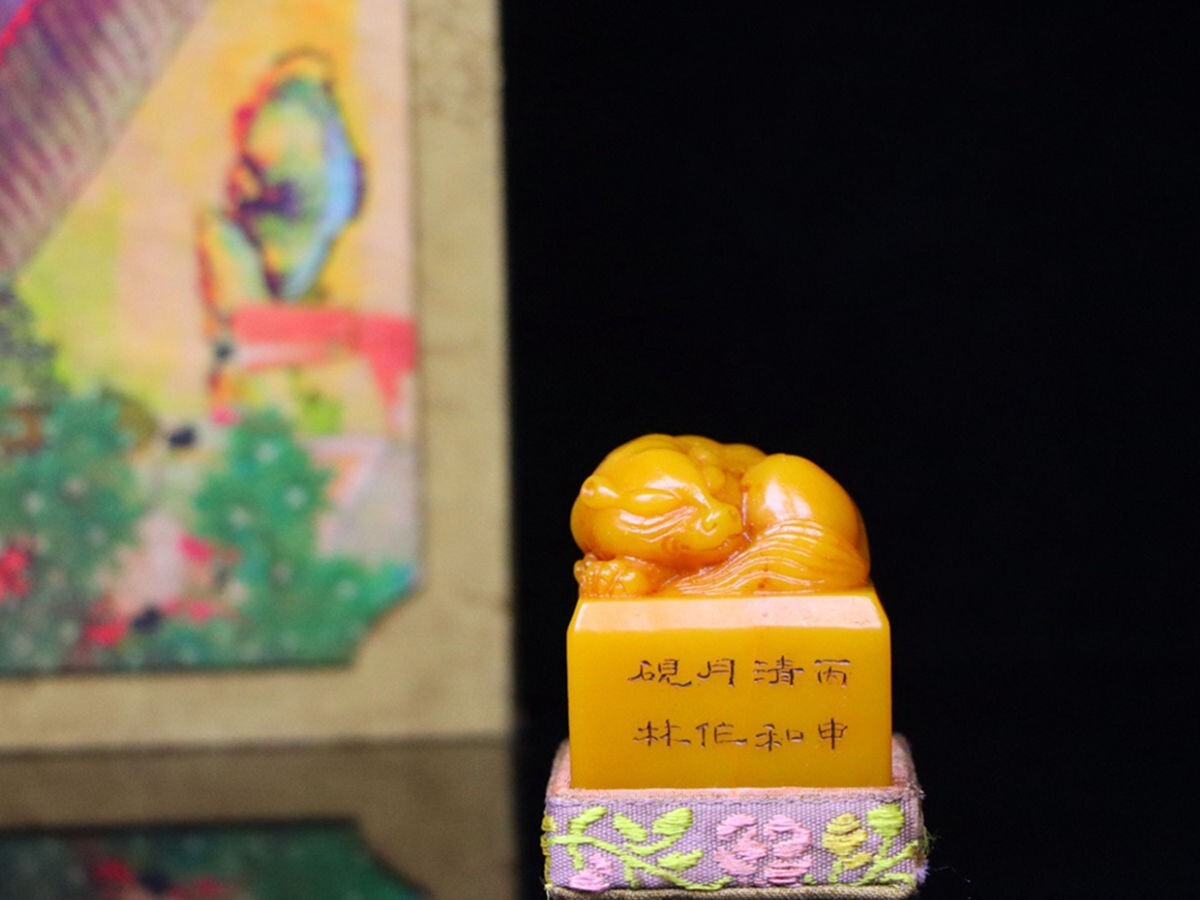 - 「清 硯林 老寿山石 田黄石彫り 瑞獣鈕印章」極細工 擺件 古賞物 中国古美術 旧蔵出