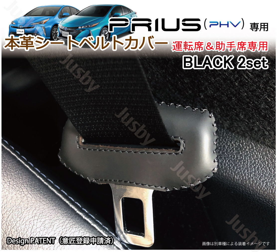 > (黒ステッチ/運転席助手席) 本皮トヨタ プリウス & プリウスPHV (50系)専用 シートベルトカバー レザーカバー ドレスアップ 傷防止 パーツ