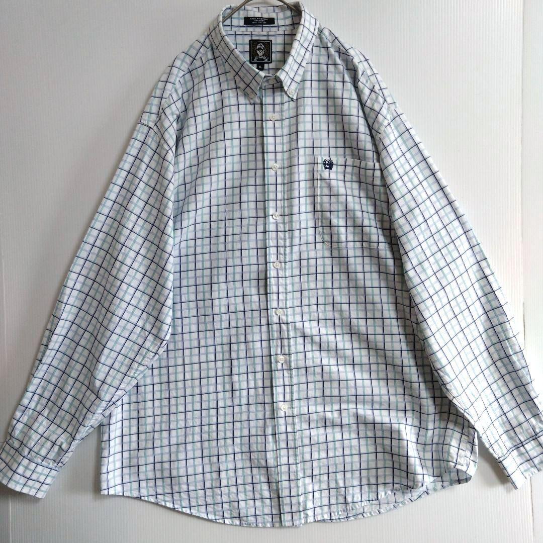 - 2698 CINCH 長袖ワイシャツ XL 白 青紺チェック柄 US古着