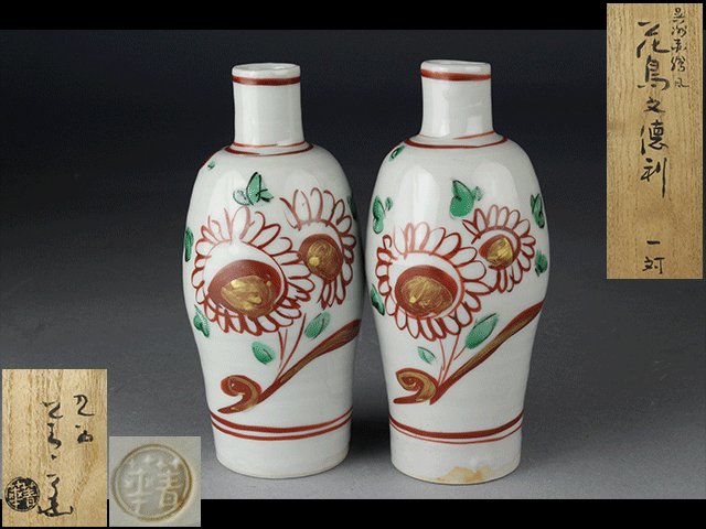 - 【西】I107 九谷焼 名工 須田菁華 呉須赤絵風 花鳥文 徳利 一対 共箱
