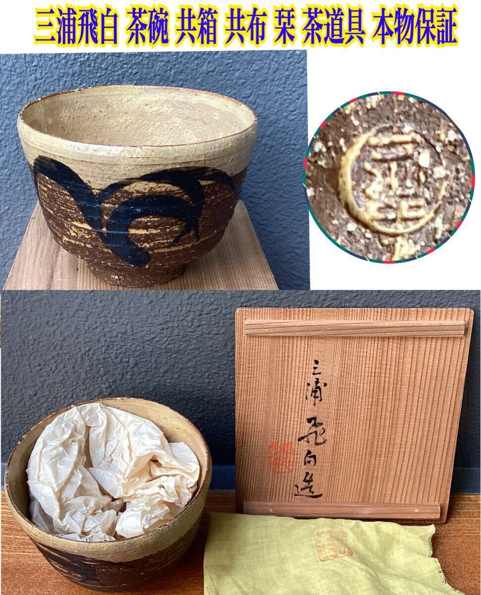 > ◆本物保証 【三浦飛白 赤織部轡茶碗】共箱 共布 栞 茶道具 高さ8.5cm 重さ288g // 茶道具 長期保管品 ★大特価!売り尽くします!