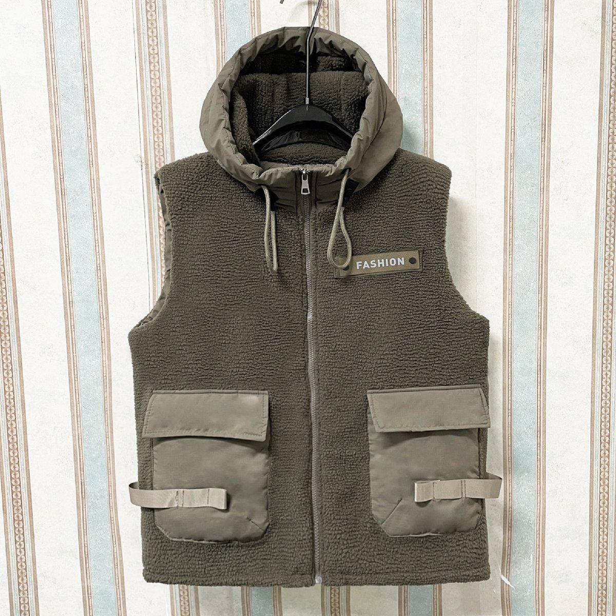 > 高級 定価7万 FRANKLIN MUSK・アメリカ・ニューヨーク発 ボアベスト コットン混 防寒 無地 フード付き アウター ストリート 日常 サイズ3