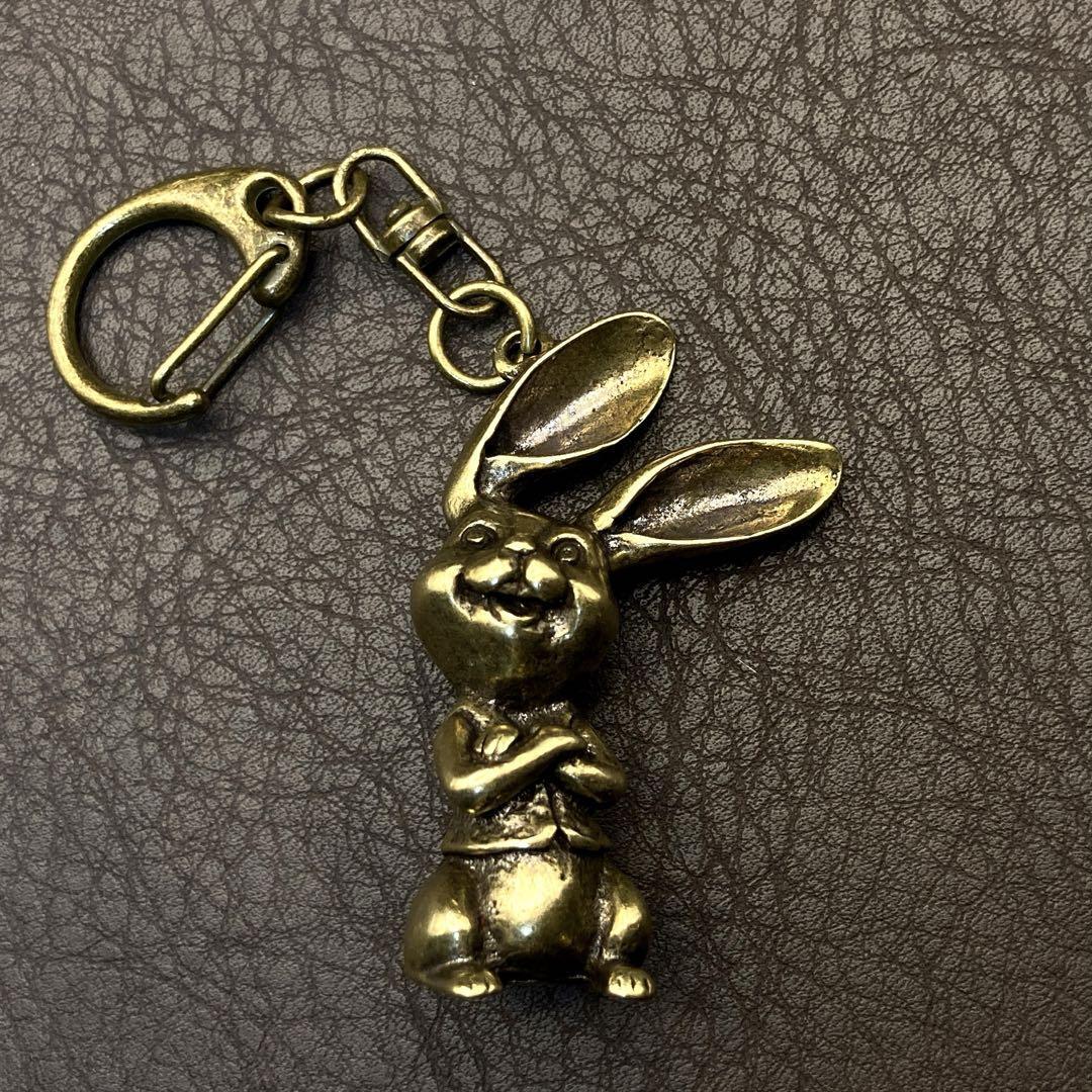 - 真鍮 キーホルダー キーリング ヴィンテージ ビンテージ アンティーク レトロ 真鍮製 ペンダントトップ 置物 チャーム ウサギ うさぎ 兎 68