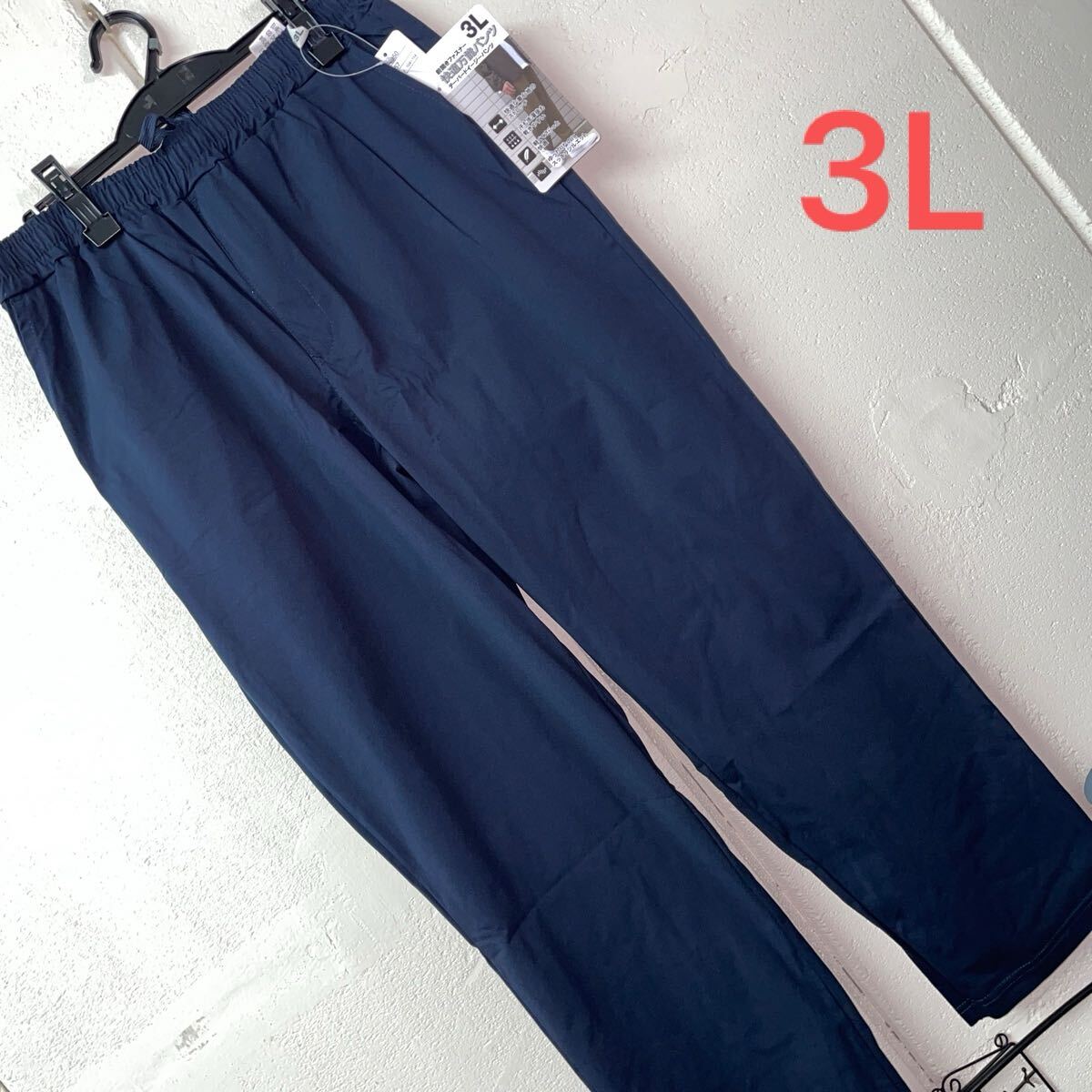 - 3Lサイズメンズトイレファスナー付き軽量ストレッチパンツ ネイビー
