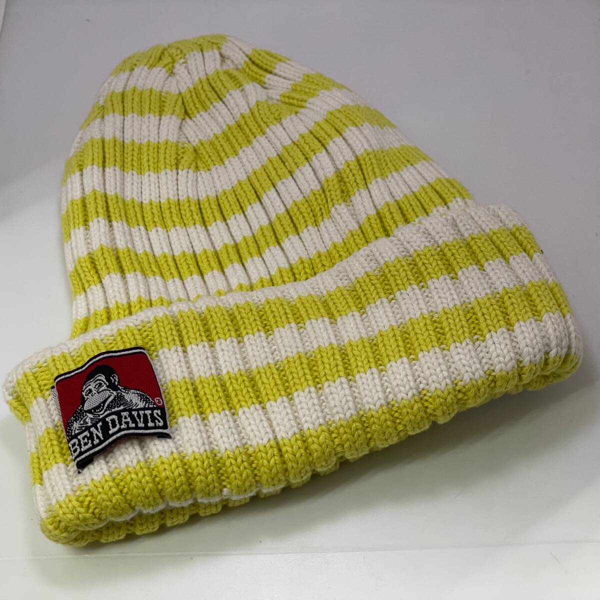 - 中古品 ニット帽 BEN DAVIS ベンデイビス ホワイト×イエロー 内周:34㎝