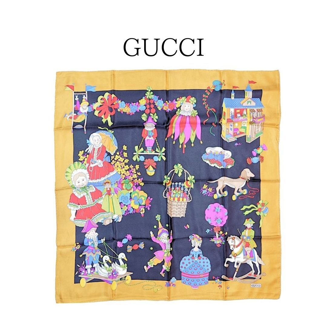 - 【鑑定済】GUCCI グッチ シルク スカーフ ガールズトイ おもちゃ ブラック オークル マルチカラー【送料無料】