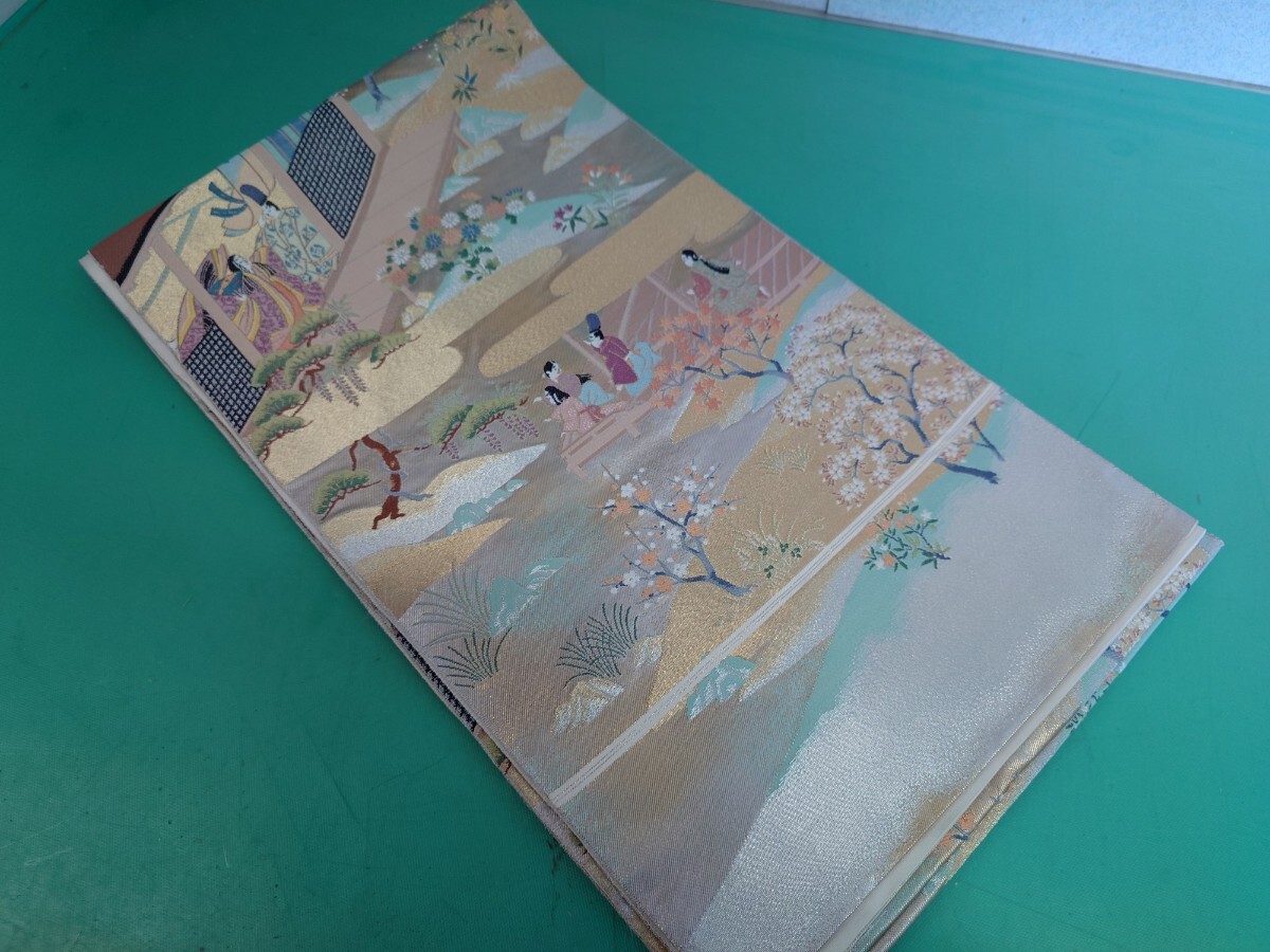 - ● 206 高級 袋帯 古典 平安蒔絵 柄 姫 殿 桜 松 藤 桔梗 菊 椛 金彩 銀彩 美品 ③